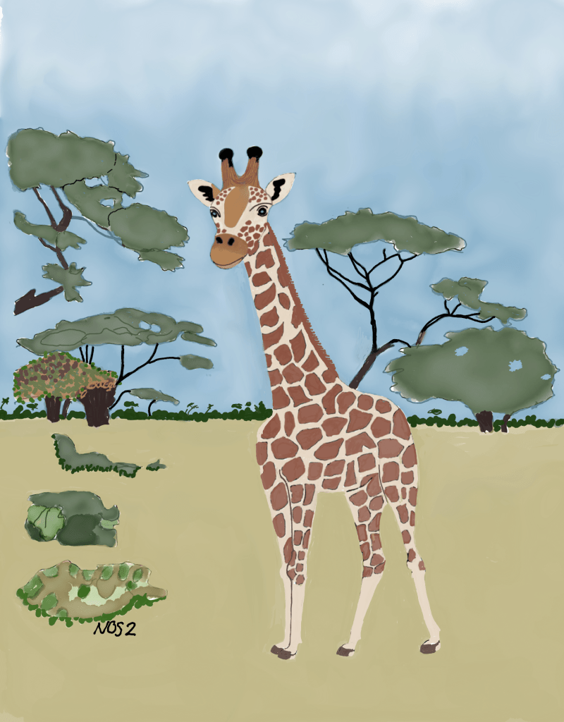 The Herd of Gazelles was broken apart because of the sudden attack, which gave less defense capacity to the poor Gazelles, and some of them unfortunately separated from the Herd dispersing in the vast dry area of the Savanna. The lost Gazelles were able to join the Herd at last except for a baby one, called Jenny, who got lost among the vegetation of the Savanna. Not knowing what to do to reach the Herd, she looked around and saw the long neck of a Giraffe and thought she could help to locate the Herd thanks to her elevated vantage point.